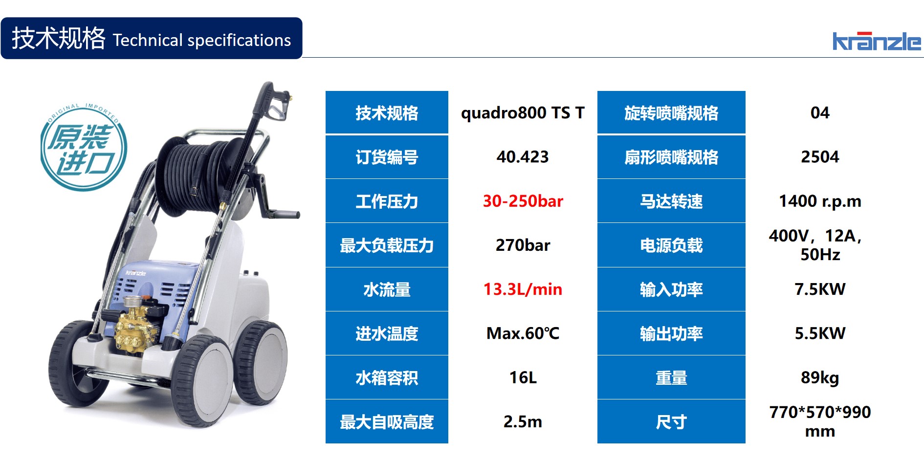 产品详情:大力神Q800TST高压冷水洗衣机价钱高压清洗机什么钱一个隐含用以存放安全切断喷枪的存放架的主体。