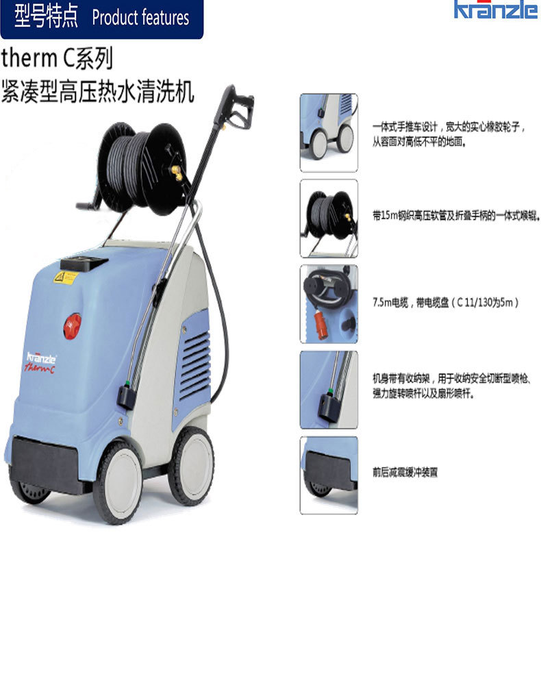 产品详情:德国进口大力神C13-180冷热水高压清洗机高压手推式大功率商场产品机能及技术参数